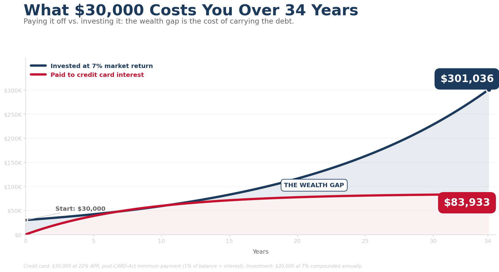 The Math: How $30,000 of Credit Card Debt Becomes $84,000 Over 34 Years